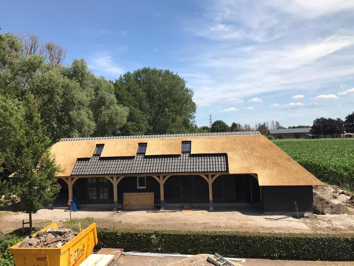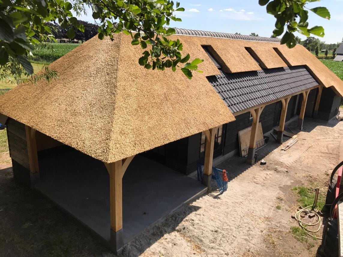 Een schuur is meer dan alleen een praktische ruimte; het is een bepalend onderdeel van het erf. Voor dit project hebben wij de schuur voorzien van een ambachtelijke rieten kap. Door de natuurlijke materialen vormt het gebouw nu één harmonieus geheel met de tuin en de omgeving. Functioneel, duurzaam en met een luxe uitstraling.